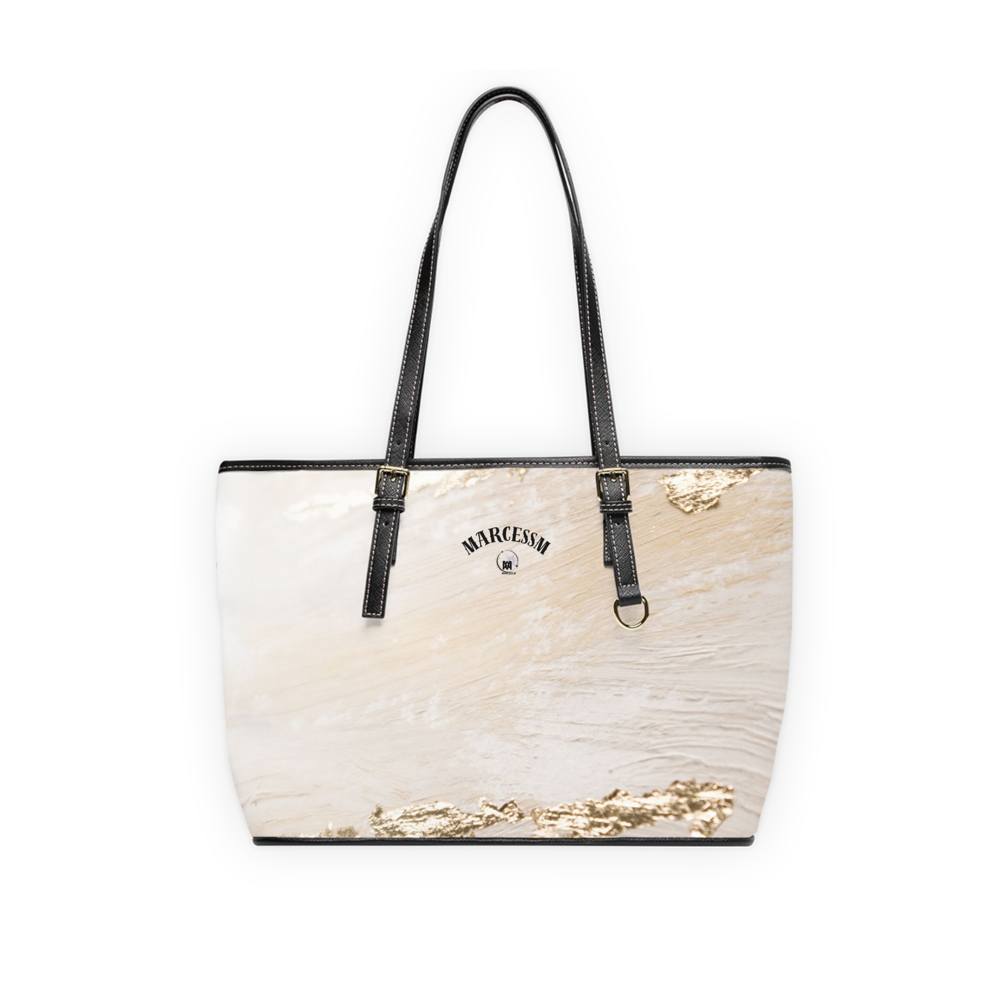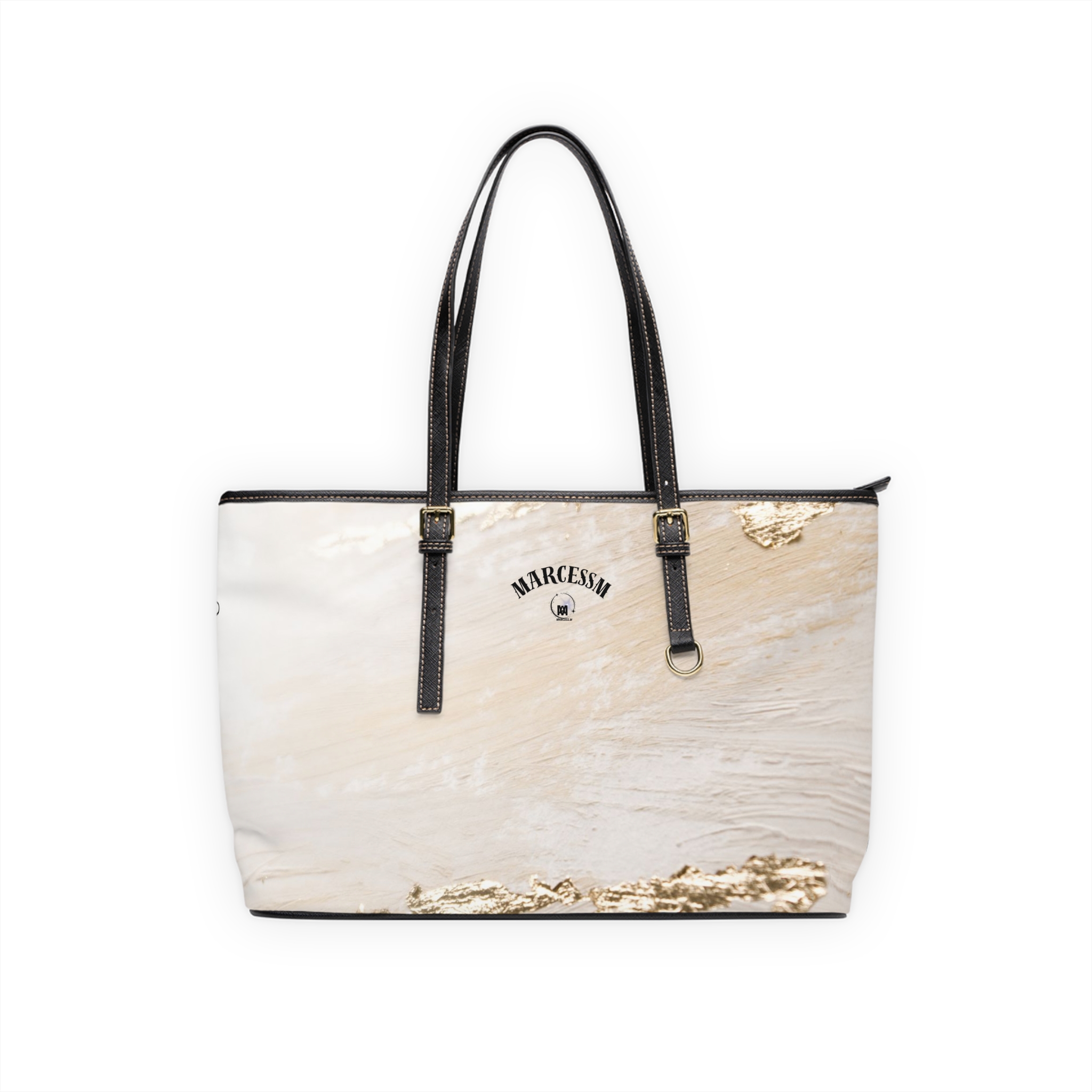 .: Gold-colored zipper and buckles