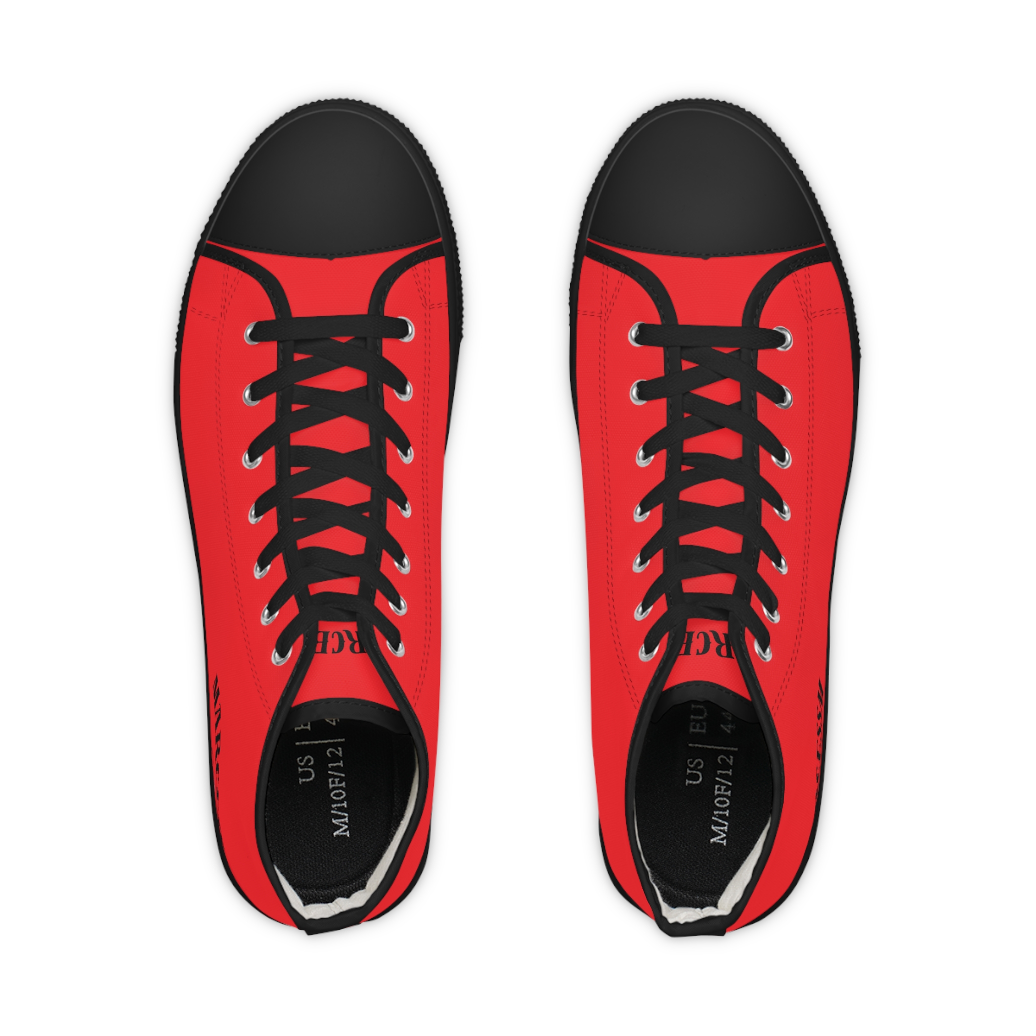 Made with breathable polyester canvas and featuring hi-poly deodorant memory foam insoles, these high top sneakers for men bear all the marks of an awesome shoe. Choose between black or white sole and laces, and enjoy the silver metal eyelets along with the lace-up closure. Add your designs and bring a bespoke staple to life.